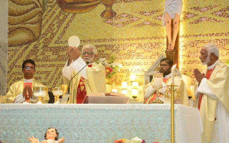 At the end of the Litany, Bp Barthol began the solemn Eucharistic celebration which was bilingual (Marathi and English). In his homily centred around the Holy Family of Nazareth, Bp Barthol emphasized that just as Jesus, Mary and Joseph respected and revered one another and there was an atmosphere of sacredness in the family so also we need to pray and respect the members of our families which in today’s time is lacking in a number of our families. Bp Barthol also highlighted the point that as pilgrims we are called to bring hope to the people beginning with our families where we have our grandparents/parents/children who may be experiencing hopelessness in their lives. He motivated the priests and religious men and women to make it a point and visit the people entrusted to their care at least once a week so that our people who are experiencing hopeless situations will experience the hope of Our Lord Jesus Christ.