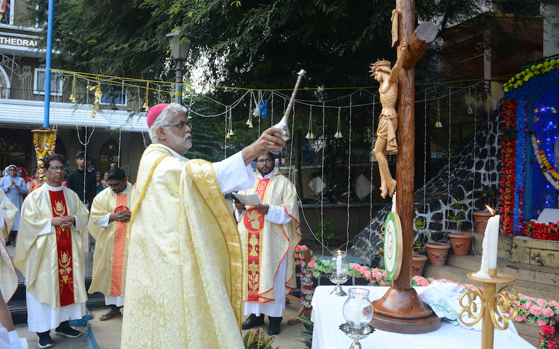 The Diocese of Nashik inaugurated the Ordinary Jubilee Year 2025 in St Anne’s Cathedral, Nashik on Sunday, December 29, 2024 in the presence of a large number of Diocesan priests, Religious men and women and 10 representatives of Lay Faithful from all the parishes. The inauguration ceremony began with a procession led by the altar servers, the Diocesan Officials and Bp Lourdes Daniel, Emeritus Bishop of the Diocese of Nashik and Bishop Barthol Barretto who presided over the ceremony. On reaching the place where the pilgrim cross was kept, Bp Barthol unveiled it and began the ritual service. After reading the Bull of Indiction, Bp Barthol sprinkled the pilgrim cross with holy water, incensed it and carried it in procession to the Cathedral where he placed it in the sanctuary. In the meanwhile, the Litany was being sung in the Cathedral. Fr Kishor Vidhate, Coordinator, Jubilee Committee, Nashik Diocese reminded those present in the Cathedral that just as the Saints followed the Cross of Christ, we too are journeying with the Cross during the Ordinary Jubilee Year 2025.
